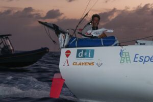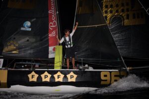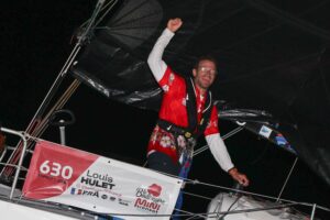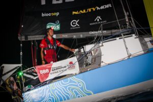 Après l’éclatante victoire de Luca Rosetti (998 – Race = Care) dans la deuxième étape, dimanche à 1h26 (heure de Paris), les pronostics allaient bon train sur les quais de la marina de Saint-François. L’Italien, qui comptait 15h05 de retard sur le leader à l’issue de la première manche, aurait-il cette fois suffisamment d’avance pour finir premier, deuxième ou troisième au classement général ? Si le podium lui était promis, restait encore à attendre les arrivées de Bruno Lemunier (893 – Kalisto & Aérofab) et de Michaël Gendebien (921 – Barillec Marine – Actemium) pour connaitre le numéro de la marche. Après des heures d’attente, le navigateur italien a finalement pu faire éclater sa joie. Le voilà en effet qui succède à Hugo Dhallenne au palmarès de l’épreuve dans la catégorie des bateaux de Série, et devient le deuxième représentant de son pays à réaliser un tel exploit après Ambrogio Beccaria, en 2019. Mais ce que l’histoire retiendra également de cette 24e édition de La Boulangère Mini Transat, c’est le terrible épilogue de la course pour le gagnant du premier round. Ce dernier a en effet passé la zone interdite à la navigation des îles de Petite Terre du mauvais côté. Ainsi, alors que la troisième place lui tendait les bras, elle lui échappe finalement au profit de Grégoire Hue (915 – SPC) qui termine, pour sa part, juste derrière Bruno Lemunier (893 – Kalisto & Aérofab).