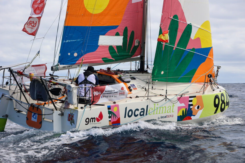 Même satisfaction pour Léo Lafon (787 – Numérobis), ravi de cette sortie avant de reprendre la mer, même pour quelques heures : « C’est bien de faire une sortie à trois jours du départ. Cela m’a permis de régler des problèmes de pilote et de tester nos voiles. C’est aussi l’occasion de voir l’île depuis la mer car j’étais arrivé de nuit. C’est vraiment joli. »