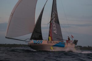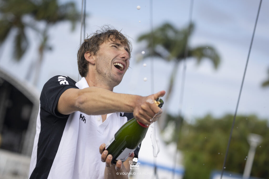 L’épreuve de se retrouver impuissant, bloqué pendant plus de 24 heures dans une nappe de sargasses, et l’intensité de l’expérience humaine, vécue seul en huis clos dans son petit bateau au beau milieu de l’océan, sont autant de souvenirs qui émaillent sa traversée, et dont il témoigne avec sincérité. Mais le résultat est là d’être parvenu au bout de ce périple à la découverte de lui-même ; et de mériter figurer sur le podium de la catégorie des prototypes au terme d’une course sur laquelle il a fait preuve d’une belle combativité.