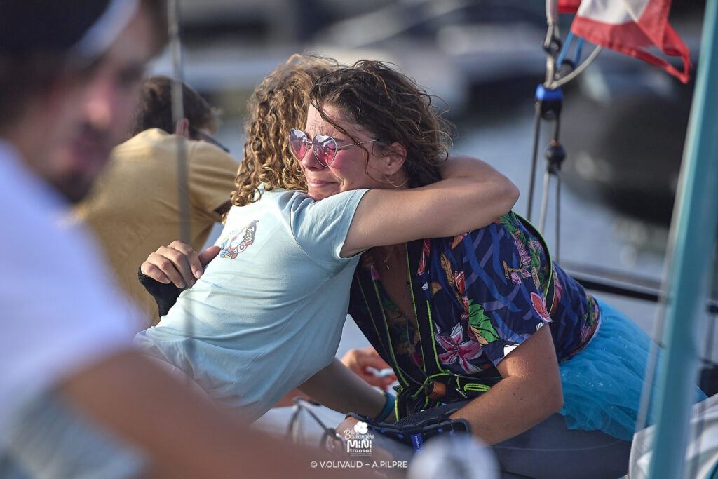 Au bout de l’épuisement… Au petit jour, Thaïs La Cam ne cache pas le flot d’émotions qui l’envahit à l’heure de rallier le ponton. Les larmes – celles de la confusion des sentiments – sont là. Elles trahissent l’épreuve de force relevée par la skipper finistérienne pour venir à bout de sa deuxième Mini-Transat, avec la douleur générée par le syndrome du canal carpien en invitée clandestine. Les deux attelles que la navigatrice porte aux poignets témoignent de cette souffrance qui ne l’a pas épargnée tout au long de sa traversée.