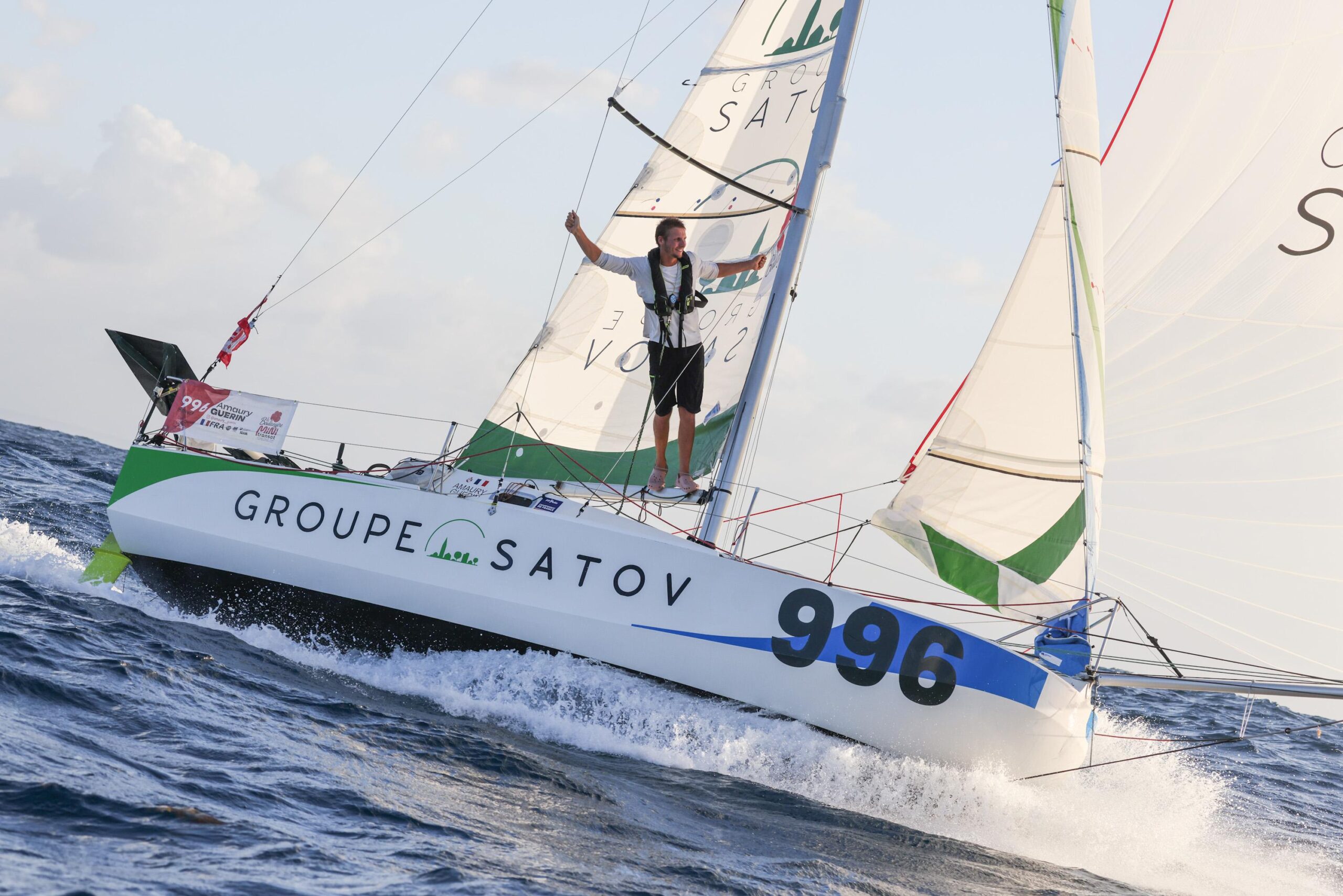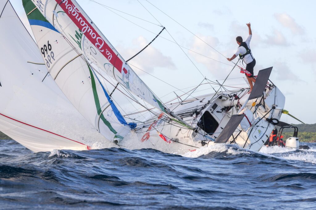 Le skipper de 23 ans a d’ailleurs volontiers fait le show, après avoir laissé exploser sa joie au passage de la ligne d’arrivée, dans la lumière rasante de la fin de journée, sous un magnifique ciel d’alizés. Le Vendéen, qui avait marqué les esprits lors de la descente express du golfe de Gascogne sur la première étape (finalement annulée), n’a pas ménagé ses efforts après un début de course en demi-teinte au départ des Canaries. Mais le skipper du Maxi Groupe Satov s’est accroché, en dépit de la perte de son spi max, pour remonter la flotte et décrocher la troisième marche d’un podium très convoité.