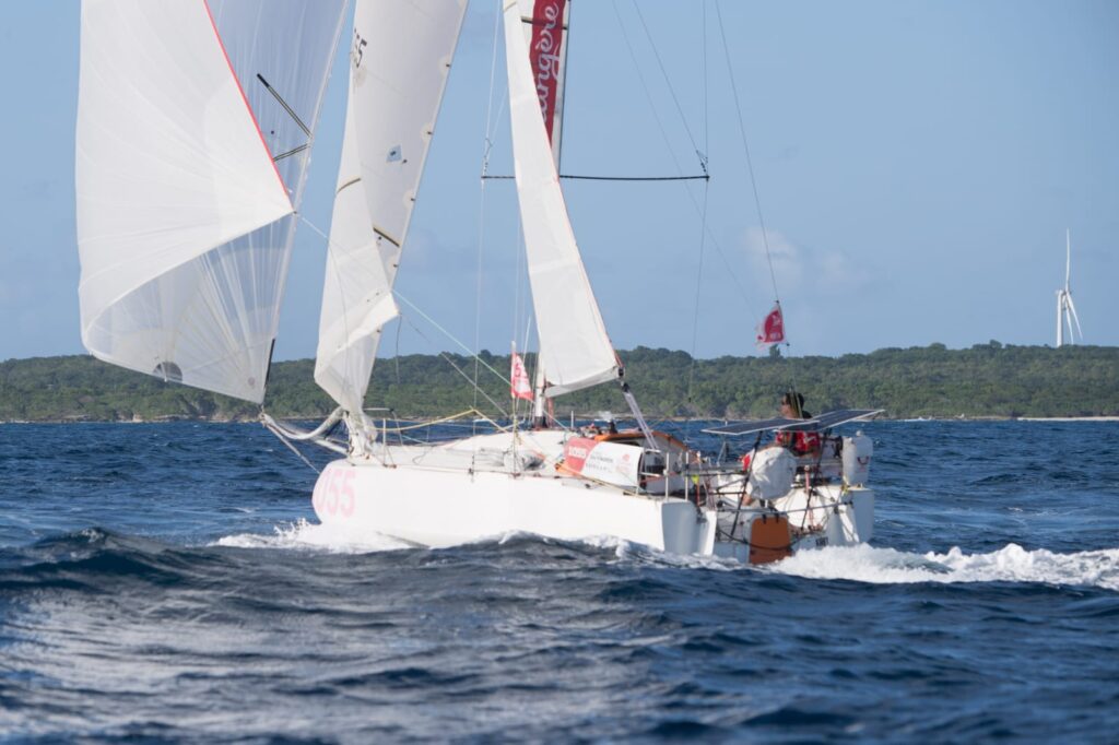 Arrivé 19ᵉ chez les séries, Loïc Guyader a bouclé sa Mini fin d’après-midi, porté par la lumière dorée du coucher de soleil guadeloupéen. Un moment fort pour le skipper, heureux d’une traversée maîtrisée et sans casse, menée à son rythme et dans le plaisir. Malgré une dernière nuit éprouvante sous les grains, il retient avant tout la magie de l’aventure et la navigation au contact au grand large pour tenir le bon rythme : « Traverser l’océan, c’est quand même sympa ! »