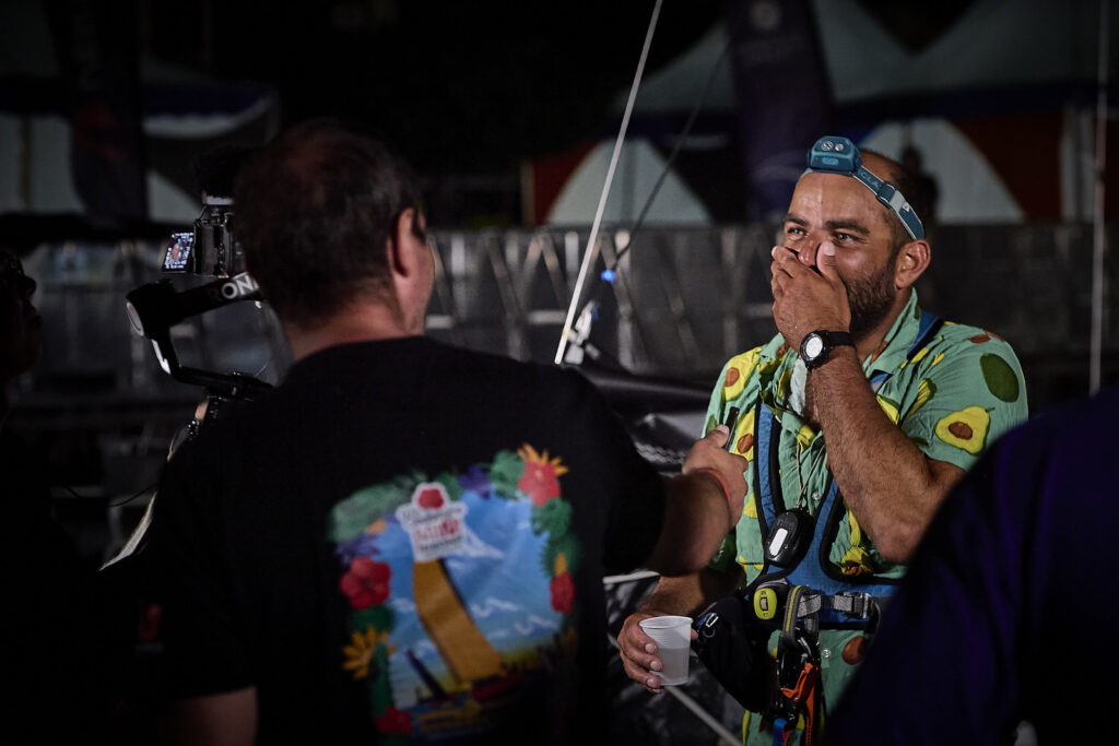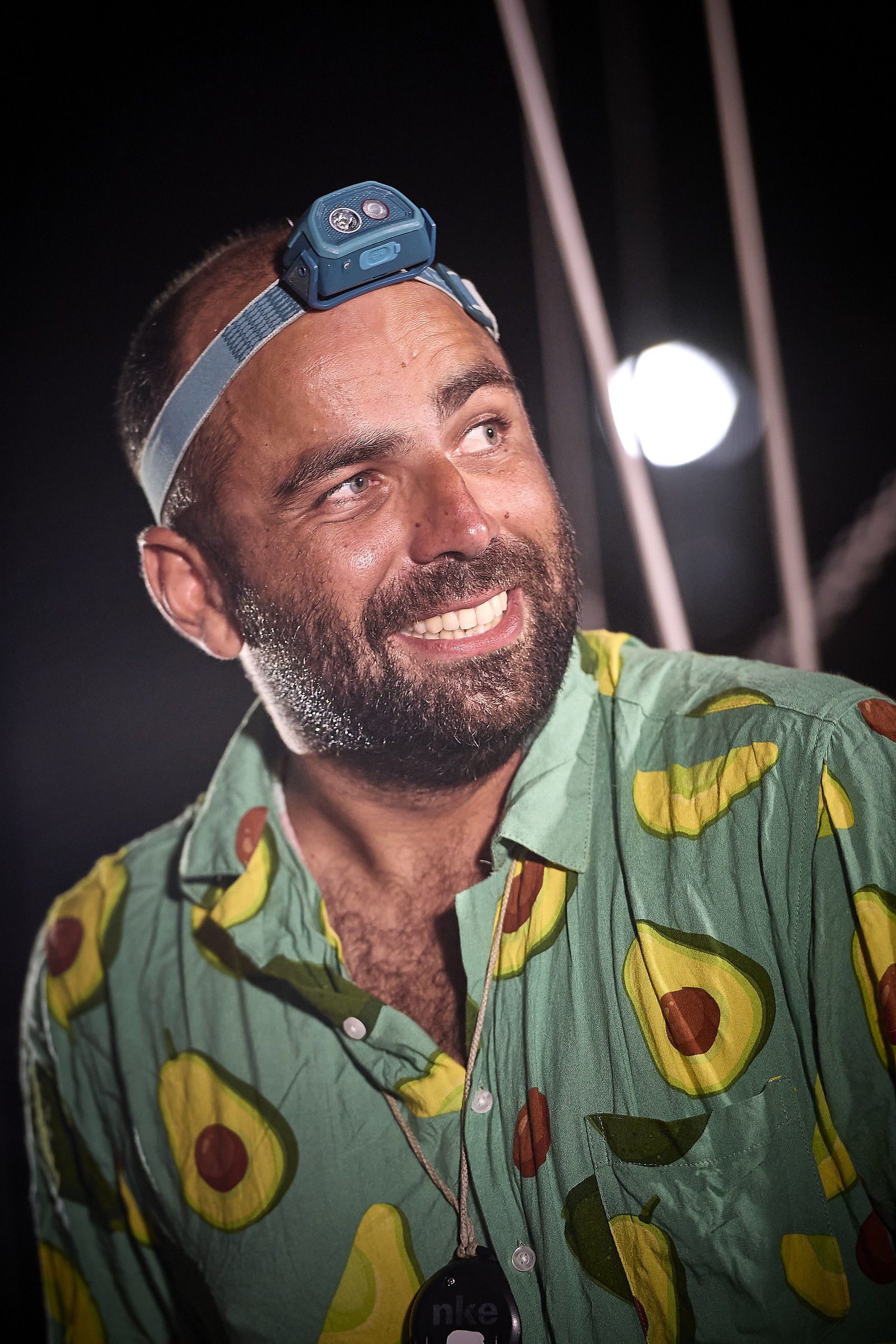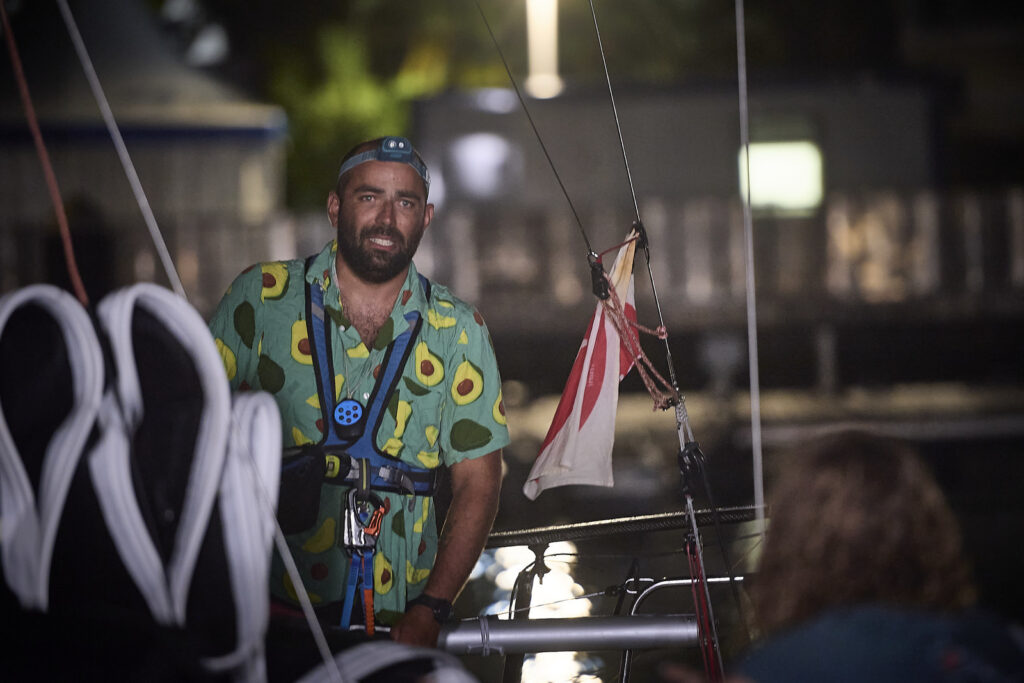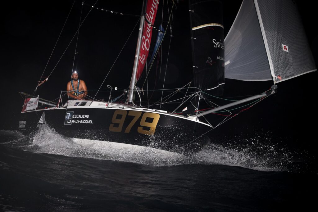 « Je ne sais pas si cette dernière nuit était “bien”, parce que j’ai failli tomber à l’eau. Il y a eu un grain, et j’ai fait le malin en restant sous spi. Résultat : je me suis retrouvé à l’abattée, sous grand spi, dans les filières, le bateau gité à plus de 90°… pas terrible ! Heureusement, j’ai renvoyé un spi derrière, je me suis dit qu’il fallait réagir et ne pas rester bloqué là-dessus.