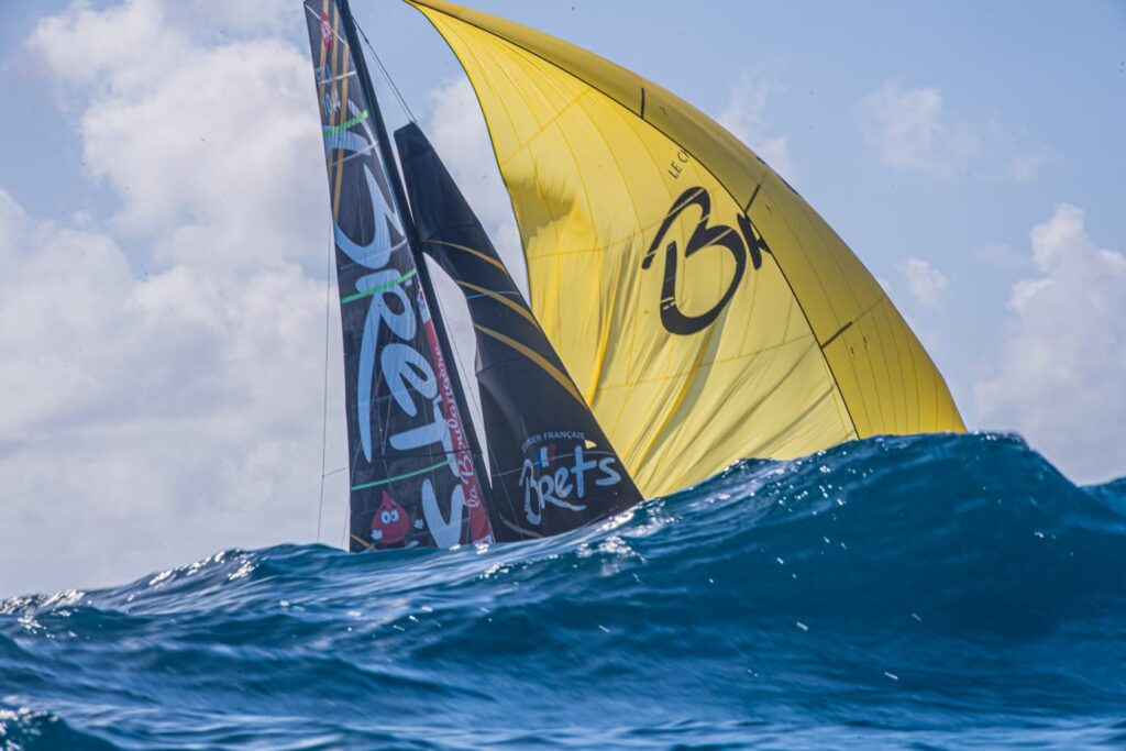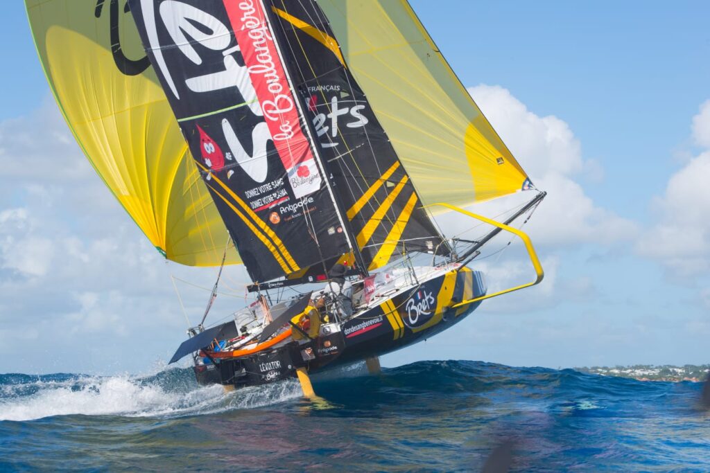 Matéo Lavauzelle a fait le show à son arrivée en Guadeloupe, à la barre de son foiler Brets – Don du Sang Bénévole, qui a coupé la ligne en plein vol. Ce bateau, qu’il a lui-même construit et qui a reçu le titre de « proto de l’année » décerné par la Classe Mini, incarne toute l’audace du skipper morbihannais. En un temps record, Matéo est parvenu à se préparer et à boucler sa première Mini Transat à bord de ce prototype révolutionnaire, reconnaissable entre mille avec ses grands foils jaunes. Éprouvé par une traversée exigeante — passée pour partie à barrer la nuit, faute d’électronique — il a tout de même réussi l’exploit d’emmener sa « chips volante » à bon port. Déçu sur le plan sportif, mais porté par l’émotion de l’arrivée, le marin de 28 ans a retrouvé ses proches et les skippers de la flotte proto, qui l’ont accueilli avec un lancé de chips en guise de cotillons.