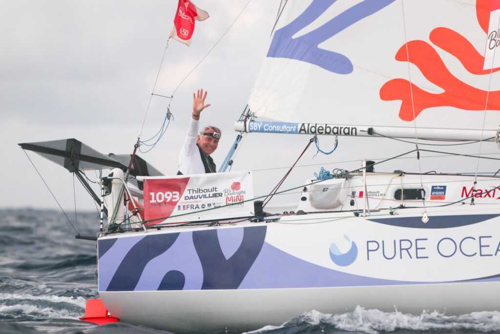 « J’irai au bout de mes rêves, où la raison s’achève… » C’est sur cet air bien connu et entêtant que Thibault Dauvillier a rejoint le ponton au petit matin, sous les acclamations d’un comité d’accueil à l’enthousiasme contagieux. À 60 ans, le skipper a bouclé, à la barre de son Maxi Allez-hop ! Pure Ocean, sa première Mini Transat. Une arrivée joyeuse célébrant, autour de sa femme et ses proches venus nombreux, une traversée de l’Atlantique bien menée, ainsi qu’un défi personnel, entre jeunesse retrouvée et plaisir de naviguer en solitaire.